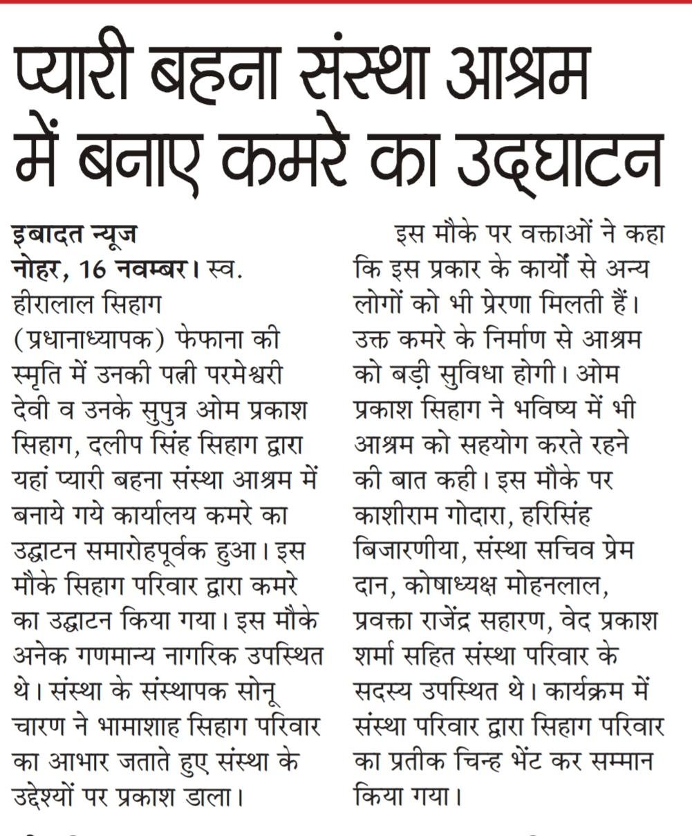 भादरा रोड संस्कार स्कूल के सामने नोहर, हनुमानगढ़, राजस्थान - 335523
